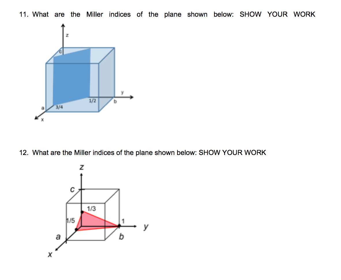 Here is all you have to to read about what are the miller indices for the plane shown below As with Miller indices the reciprocals are usually divided by the largest common factor. Reciprocal of plane fraction. Show the plane below for the following Miller Indices. Supplemental question cubic plane indices 12 what chegg what are the miller indices for the planes shown chegg what are the indices for the direction represented chegg determine the miller indices for the planes shown chegg miller indicies practice examples determine the four indices miller bravais directions chegg Representation of a single plane is xyz.